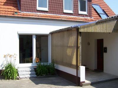 Schlafzimmer mit zwei Schlafplätzen (140 x 200 cm + 90 x 200 cm)und geräumigem Kleiderschrank. Separat angebauter, gemütlicher Sitzbereich mit 2 großen Fenstern und Ausblick in die Felder. Kleines Duschbad mit Toilette und Fenster. Terrasse und Garten mit versch. Sitzgelegenheiten und Kinderspielbereich. Parkplätze direkt am Haus.
